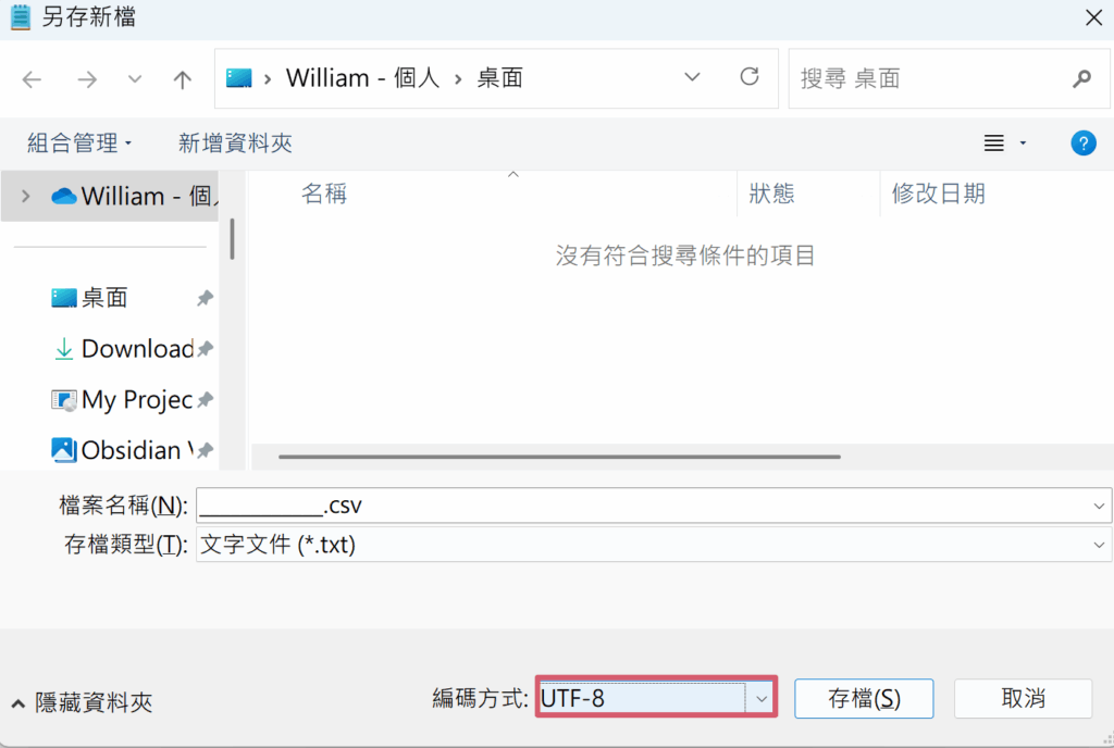 2. 再點另存新檔,將編碼方式改為UTF-8,另存新檔。