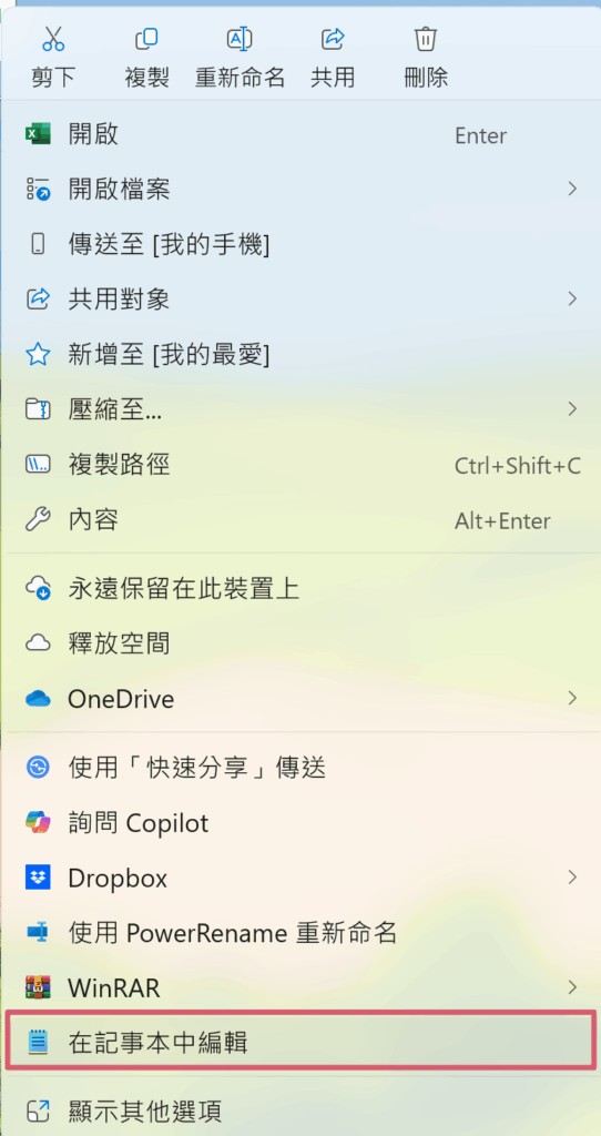 可以使用Windows內建的記事本(Notepad)打開CSV檔案