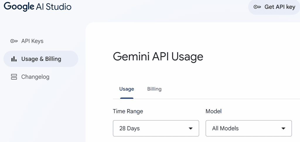 2. 在 Google AI Studio 頁面,點選左下角「Usage & Billing」