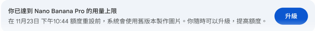 但是要注意的是,如果是免費版Gemini,系統是有設定使用次數上限的、一定達到使用上限就要等到冷卻時間過後才能再使用了。而舊版本的Nano banana 相對新版的功力就差多了,這點一定要多注意