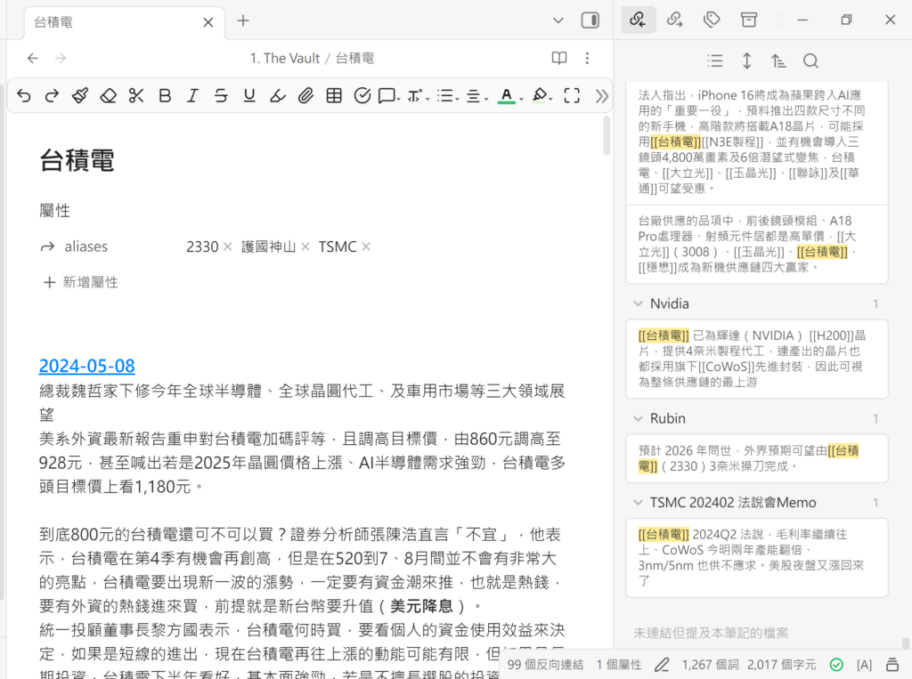 反向連結幫你整理「這個主題曾經在哪裡被提過」,把原本散落各地的想法串成一張網。