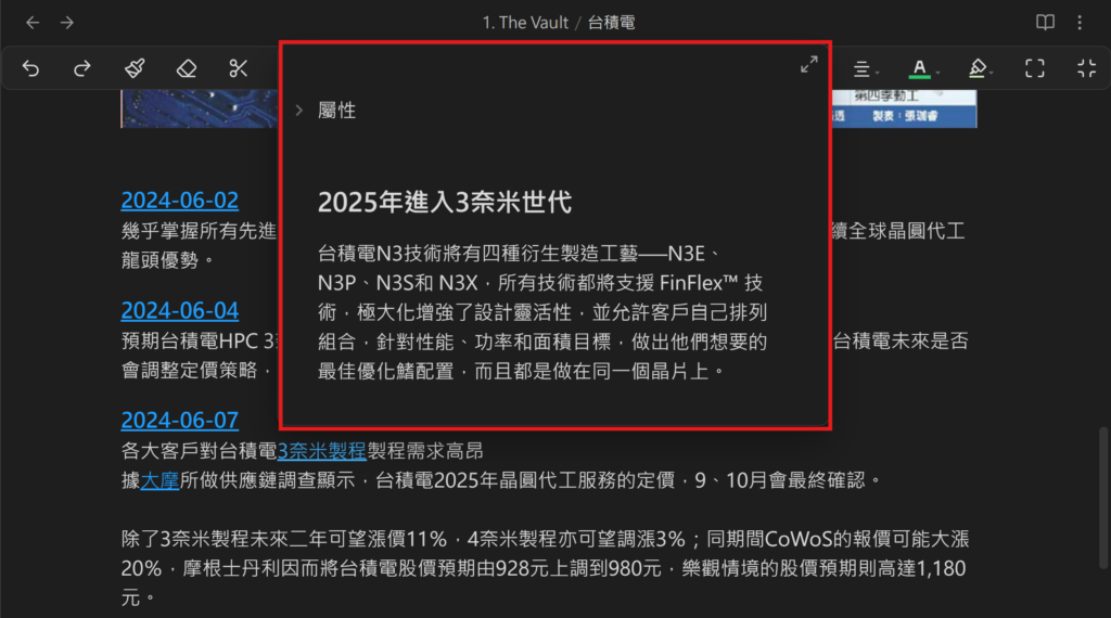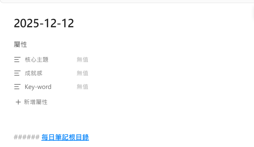 屬性檢視把原本要手動寫 YAML Frontmatter 的那一區,變成圖形化介面。